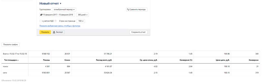 Из скриншота мы видим, что на рекламу без НДС было потрачено 57 786,21 рублей и получено 340 заявок. Цена конверсии составляет 169,96 рублей. Прошу запомнить эти цифры, потому что дальше произойдёт магия.